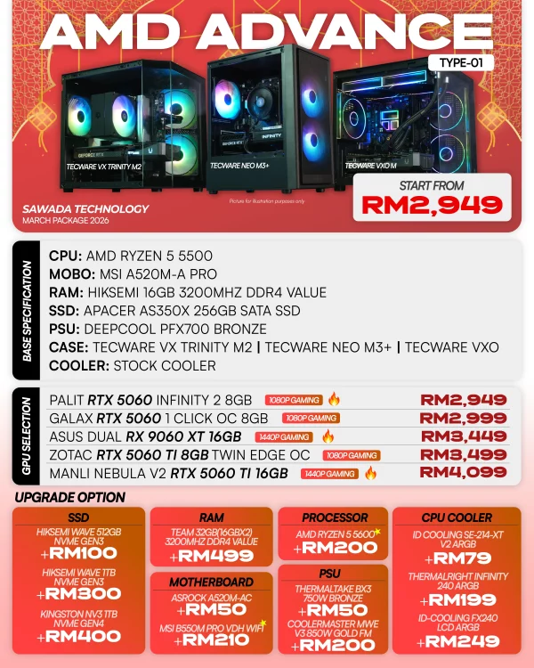 | GPU Upgrade | Palit RTX 5060 Infinity 2 8GB, Galax RTX 5060 1 Click OC 8GB, Asus Dual RX 9060 XT 16GB, Zotac RTX 5060 Ti Twin Edge OC 8GB, Manli Nebula V2 RTX 5060 Ti 16GB |