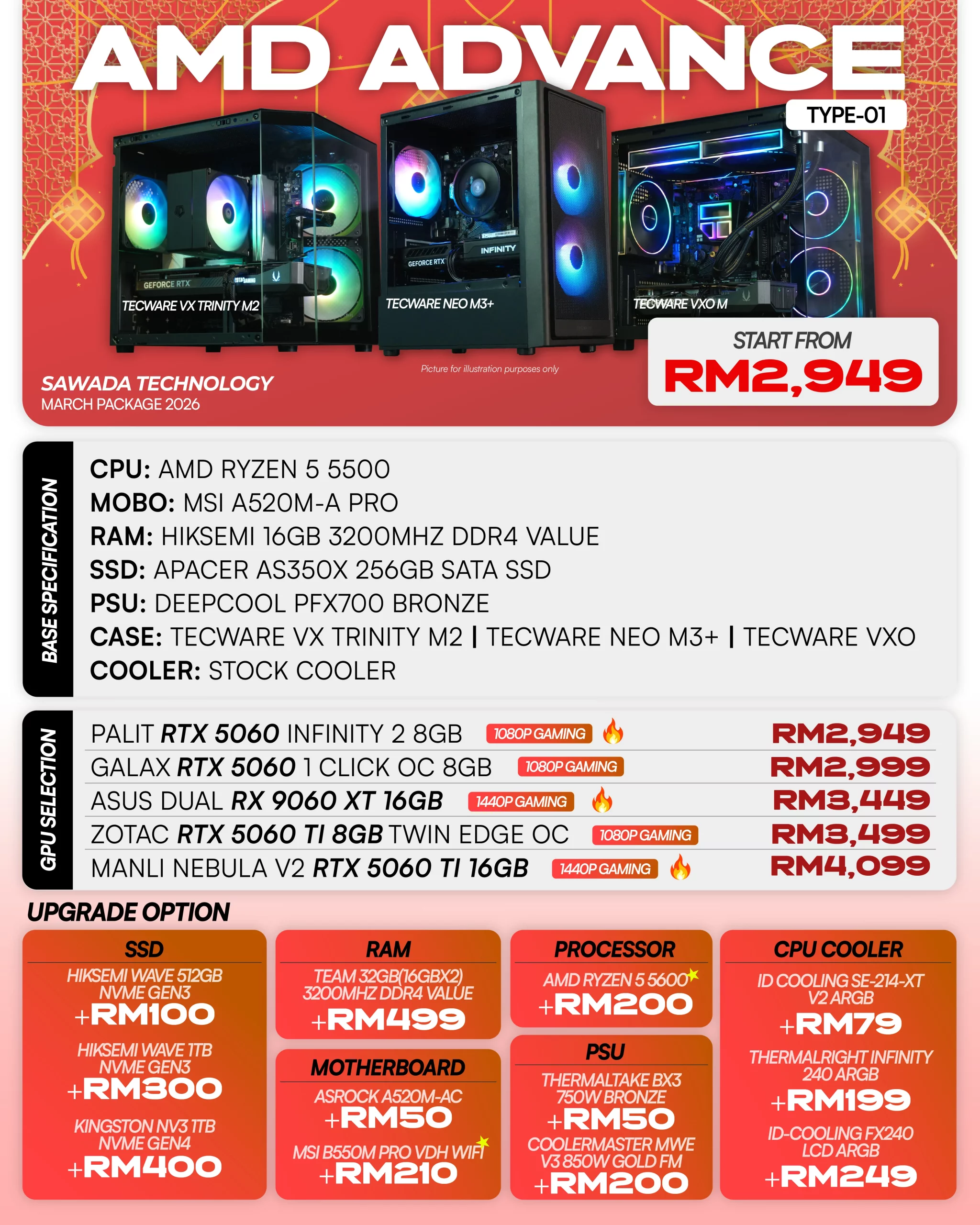 | RAM Upgrade | Hiksemi 16GB 3200Mhz Ddr4 Value, Team 16GBx2 3200Mhz Ddr4 Value |
