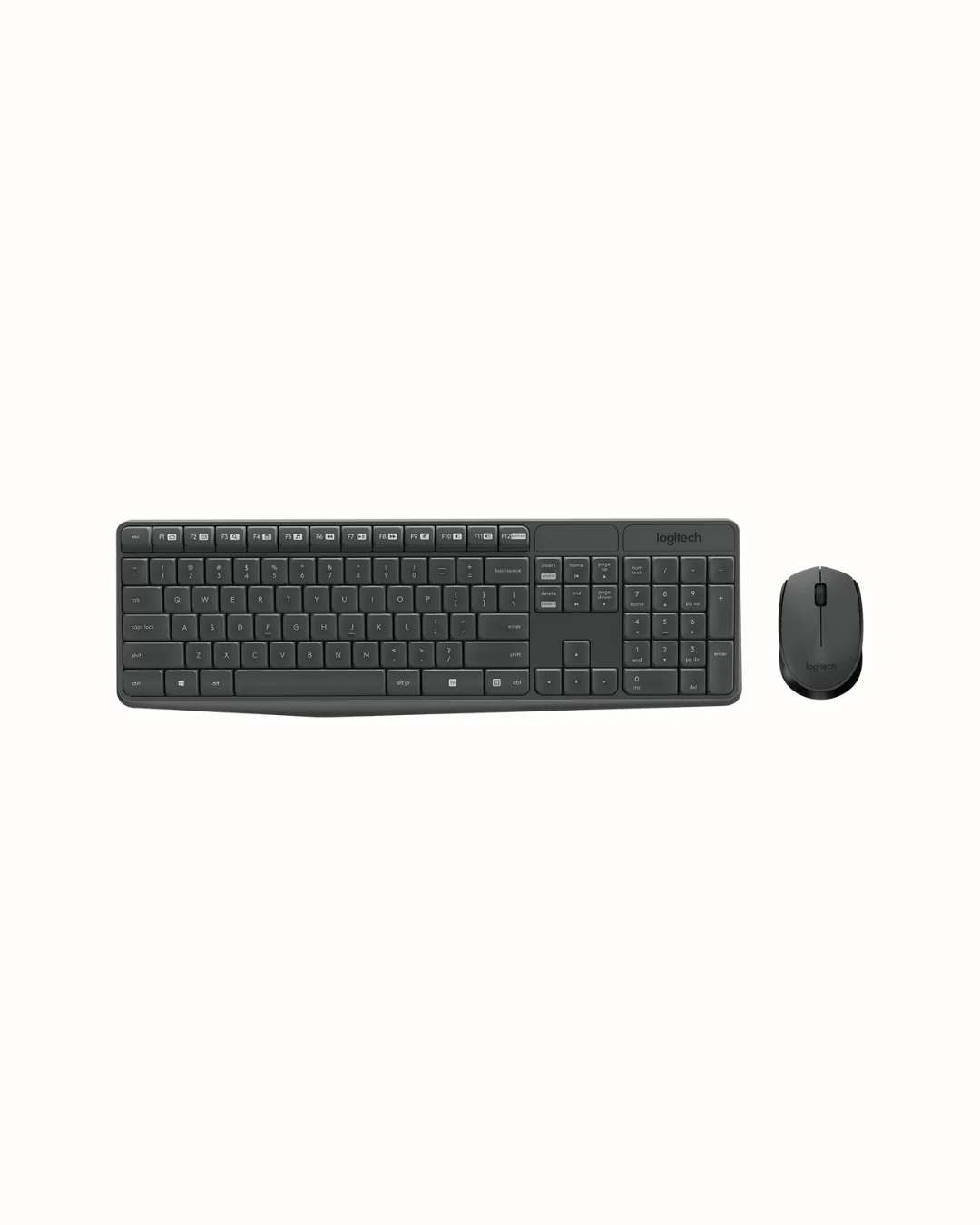 Elevate your workspace with the Logitech MK235 Wireless Keyboard and Mouse Combo, offering a reliable 2.4 GHz wireless connection and long battery life. This combo features a full-size keyboard with a familiar layout and an ambidextrous optical mouse, perfect for both home and office use. Enjoy the convenience of plug-and-play setup with no software installation required.