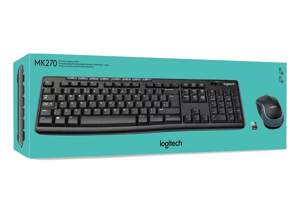 The Logitech MK270R is a reliable wireless keyboard and mouse combo featuring 2.4GHz wireless connectivity with up to 10m range. Full-sized keyboard with media keys, number pad, and spill-resistant design paired with a compact ambidextrous 3-button optical mouse.