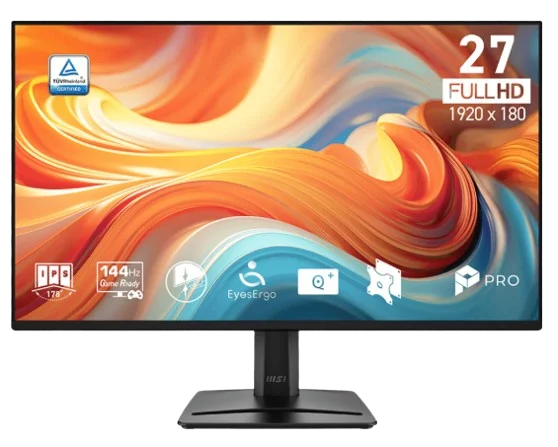 The MSI PRO MP275 is a 27-inch Full HD business and productivity monitor featuring an IPS panel with 100Hz refresh rate and FreeSync support for smooth visuals.